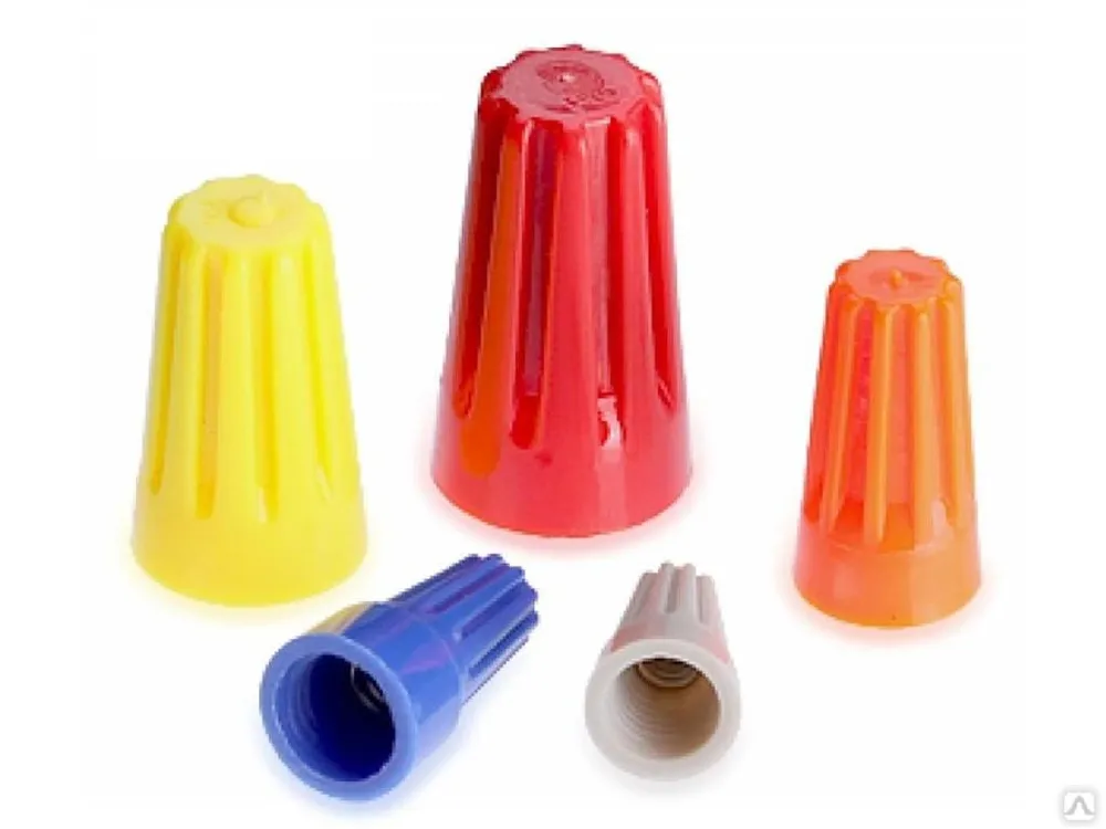 Данный элемент по своей сути является изолирующим зажимом. Колпачки, как правило, выполняются из пластика. Внутри колпачков есть пружинка, выполняющая роль фиксатора. Из преимуществ данного элемента необходимо отметить негорючесть, доступность, возможность удобной маркировки проводов. Очень важно знать, какие провода можно соединять друг с другом. Что касается этого случая, медь с алюминием нельзя соединять при помощи данных колпачков.